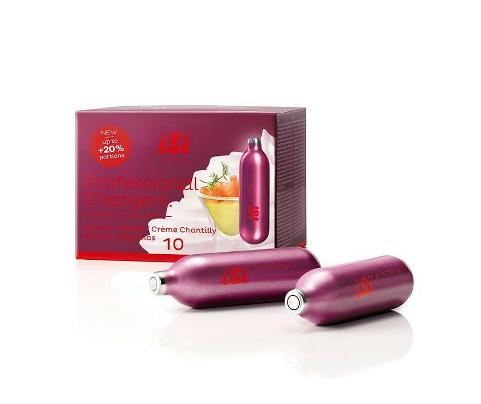 Disse flødepatroner er en opgradering med færre kalorier men den samme smagsintensitet som de tidligere patroner. De er yderst smarte for dig, der ønsker at kunne lave lækkert flødeskum, uanset om det er til desserter, alkoholiske drikke eller varme drikke. De nye professionelle flødepatroner forbedrer de gamle patroners effektivitet med op til 20 %. Det skyldes, at der slet og ret er mere energi i dem, og de derfor holder længere. De nye professionelle patroner indeholder +12 % gas på stort set samme volumen som de gamle ladere, med deraf følgende stigning i tryk og volumenforbedring. Den resulterende emulsion er meget lettere, stabil og holdbar. PRO flødepatroner 8,4 g/10stk.