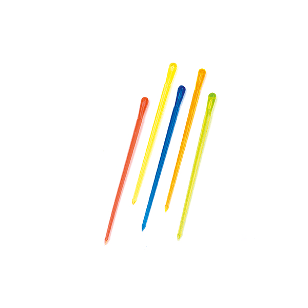 Pindemadspinde i forskellige farver og med en længde på 84 mm. Disse pindemadspinde kan snildt bruges til både pindemadder og som pynt i cocktails og kan med deres forskellige farver give hver pindemad sit individuelle touch. Pindene tilfører pindemadderne eller cocktailsene ekstra liv, og giver med deres mange farver anledningen et festligt udtryk. Med deres slanke udseende, sikrer du et enkelt og rent udtryk. På den måde opnås en god blanding mellem det festlige og sprudlende og det enkle. Længde: 84 mm