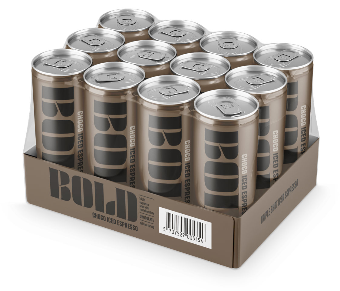 BOLD Choco Iced Espresso er en kraftig iskaffe med et højt koffein-indhold og en sød chokoladesmag. Den er lavet med espresso fra Robusta-bønner, der giver den en intens smag. BOLD Choco er velegnet til kaffe-cocktails, hvor den kan bidrage med en bred vifte af smagsnuancer. BOLD Choco er langtidsholdbarer (365 dage fra produktion).