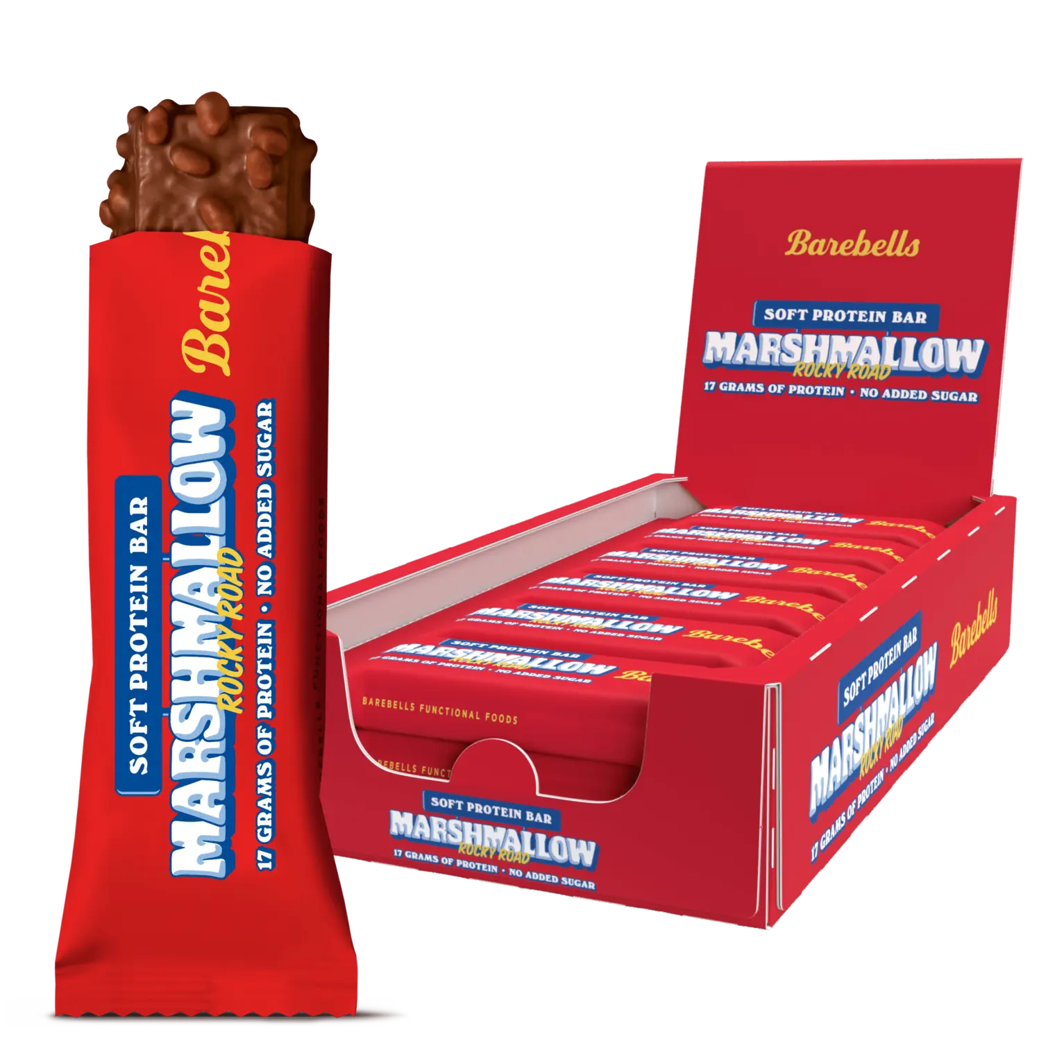 Barebells Rocky Road Nutty Marshmallow er den fortryllende kombination af salt, sødt og knas – det lyder måske overvældende, men bare vent til du prøver denne candylicious proteinbar! De knasende sprøde peanuts, kombineret med bløde skumfiduser, fluffy proteinmasse, silkeagtig karamelsauce og cremet mælkechokolade er med til at skabe den perfekte blanding af knas, sødt og salt, som Barebells Rocky Road Nutty Marshmallow proteinbar indeholder.Barebells Rocky Road Nutty Marshmallow proteinbar er beriget med 17 gram protein, indeholder 209 kcal pr. bar og er uden tilsat sukker.Treat your taste buds with this nutty treat.