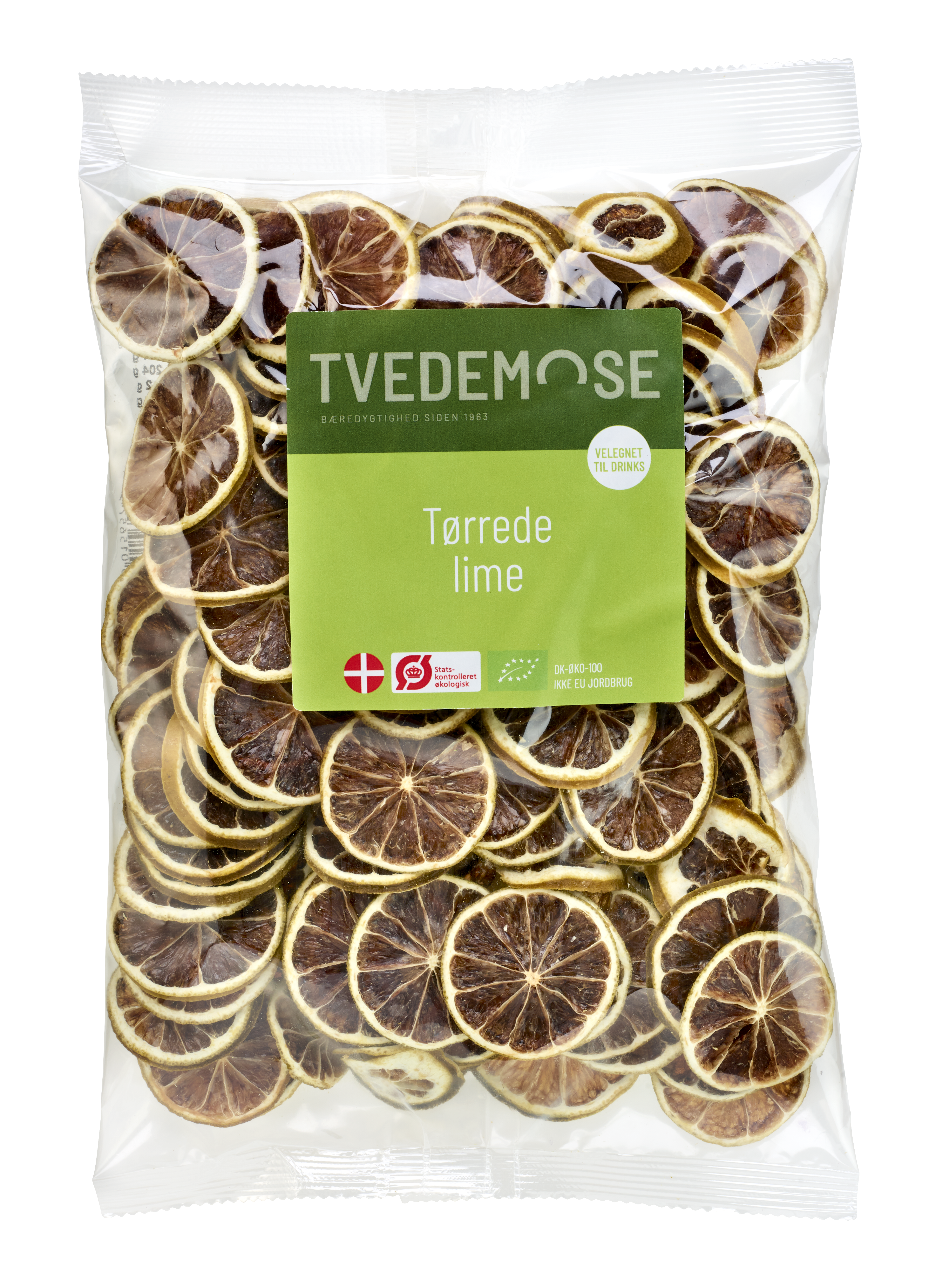 Indhold: 200 gAlkohol: 0,00 %Land: Danmark Tørrede limefrugter har en sødere og dybere smag end friske limefrugter, som er mere syrlige. Tørringen fremhæver smagen og bevarer samtidig den karakteristiske aroma, der kendetegner lime. De økologiske tørrede limefrugter er derfor af en særligt høj kvalitet - perfekte til pynt i drinks og cocktails og til at give en frisk og lækker smag. Det unikke ved disse tørrede frugter fra den bæredygtige fødevareproducent, Tvedemose, er, at de tørres i en “Dehydrator”. Dehydreringsprocessen er skånsom, så alle næringsstoffer og aromaen i citrusfrugterne bibeholdes. Med denne tørring frigives olierne optimalt i mødet med væsken i drinken, hvilket sikrer den karakteristiske autentiske limesmag.