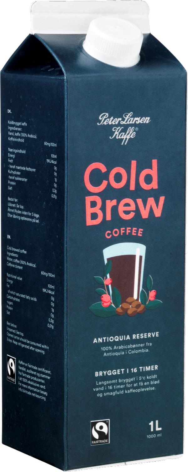 Alkohol: 0,00 % Indhold: 8 x 1000 ml Land: Danmark Koldbryg er kaffe, der er brygget på koldt vand i 16 timer. Brygningen fjerner alle bitterstoffer og sikrer en sød, afrundet smag af kaffe. Ingredienser: Vand, Kaffe (100 % Fairtrade Arabicabønner.)