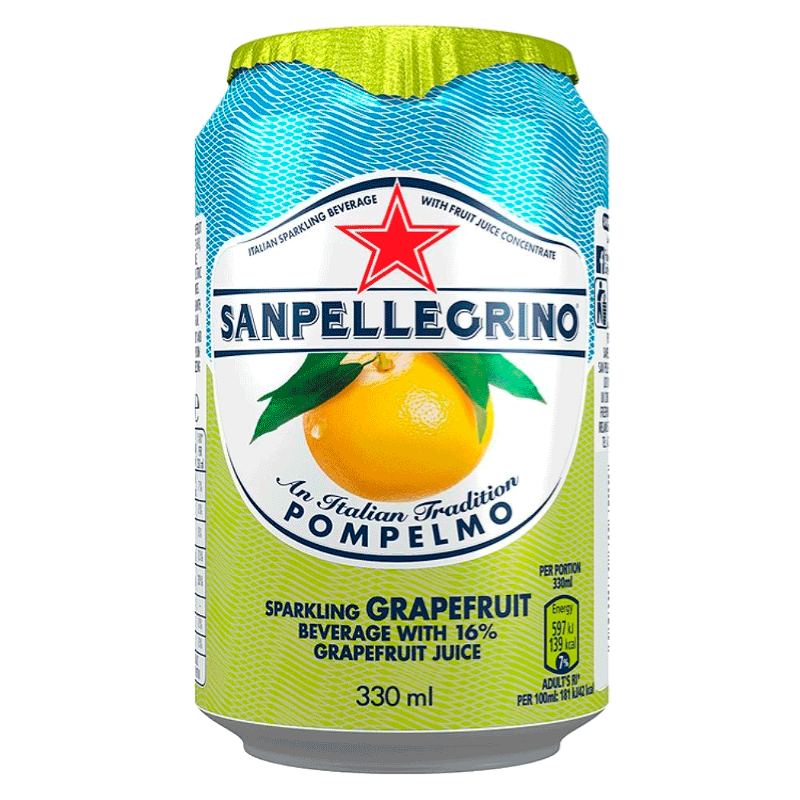 Indhold: 33,00 cl Alkohol: 0,00 % Land: Italien San Pellegrino Fruit Beverages har et meget højt koncentrat af frugt og kun et mindre indhold af sukker. San Pellegrinos frugtsodavand med grapefrugt har en rig smag og naturlig sødme med et strejf af bitterhed. Frugtjuicen kommer fra grapefrugter modnet på Sicilien, hvor solen har givet frugterne den varme, gode smag. Dåsen byder på et elegant design, der vil pryde et hvert mødebord. Med praktisk og elegant beskyttelse af dåsens top, ser man også her, at der er kræset for detaljen.