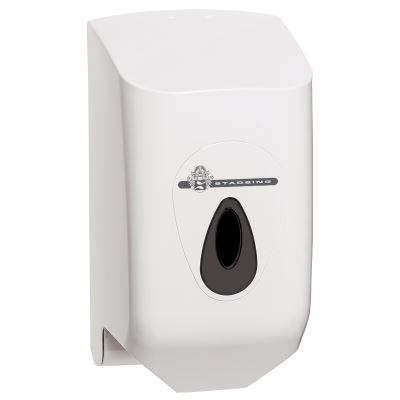 Dispenser, WeCare, Mini, Håndaftørring Denne dispenser til aftørringsruller fra WeCare er kompakt og passer perfekt til miljøer med begrænset plads. Den er fremstillet af robust, hvid ABS-plast, som modstår misfarvning. Det stilrene, klassiske design passer ind i forskellige hygiejnemiljøer som skoler, plejehjem, kontorer, storkøkkener, hospitaler og offentlige toiletter. Dispenseren er let at betjene og rengøre takket være den glatte, hygiejniske overflade.