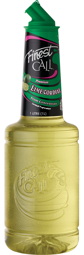 Finest Call Lime Cordial (+pant) Alkohol:0,00% Indhold: 100 cl. Enhed: Flaske Pant: C Antal pr. kolli: 12 Land: USA West Indian-lime giver vores 100% pure Lime Juice den perfekte syrlighed og en blød, floral aroma, som gør den til et uundværligt element i baren, der bruges i utallige cocktails, fra en klassisk margarita til en gimlet.