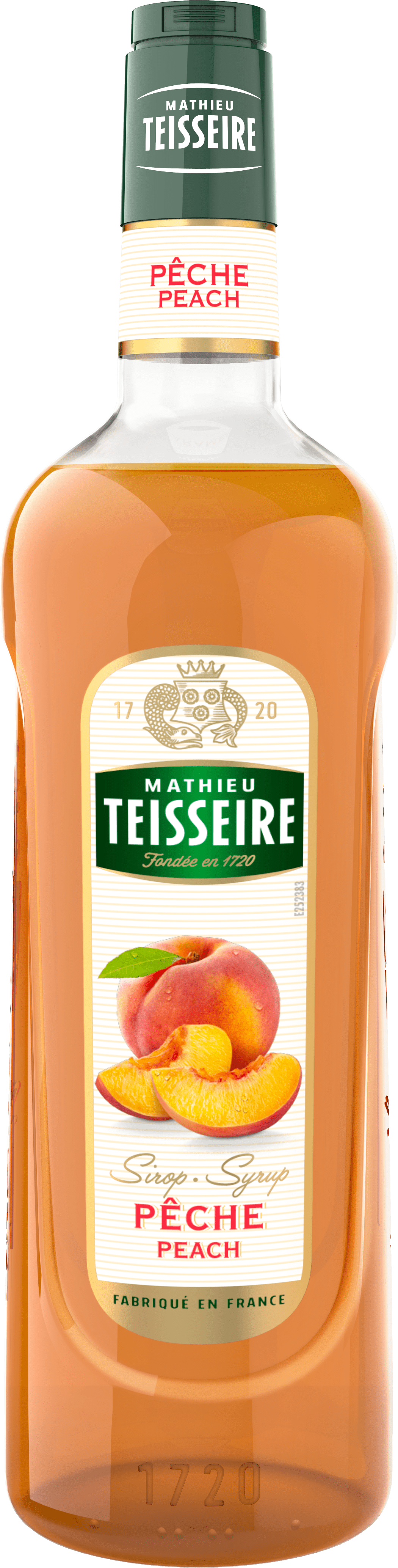 Mathieu Teisseire Syrup Peach (+pant) Indhold: 70 cl. Enhed: Flaske Pant: A Antal pr. kolli: 6 Land: Frankrig Mathieu Teisseire sirupper er skabt med århundreders erfaring og en dedikation til høj kvalitet. Ved brug af to typer sukker undgås krystallisering, og sødmen balanceres på den bedst mulige måde. Vandet stammer fra de franske alper, og sirupperne indeholder et højt indhold af frugtsaft, hvilket giver en autentisk smag, der løfter enhver drink. Mathieu Teisseire Ferskensirup indfanger den naturlige smag af saftige, modne ferskner. Med sin søde, friske duft og bløde smagsprofil minder siruppen om en perfekt moden frugt. Den er ideel til citronvand, sodavand, te, cocktails og alkoholfrie drinks, og den kan endda bruges til at give kaffe et forfriskende twist.