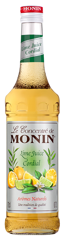 Monin Lime Juice Cordial Mixer præsenterer en klar lys farve og en frisk aroma med citron juice, som ledsages af en balanceret smag af citron og lime juice, der efterfølges af en velbalanceret eftersmag mellem det syrlige og det søde. Monin Lime Juice Cordial Mixer er en blanding af lime juice, citron juice og sukker. Den er minimum lavet af 50% juice. Monin Lime Juice Cordial Mixer har et laverer sukkerindhold end en sirup, og vil være perfekt til at give en unik smag og balance til dine klassiske cocktails såsom Margarita, Mai-Tai og Gin & Tonic. Den kan også bruges til sodavand eller lemonader, te eller frugt punches.