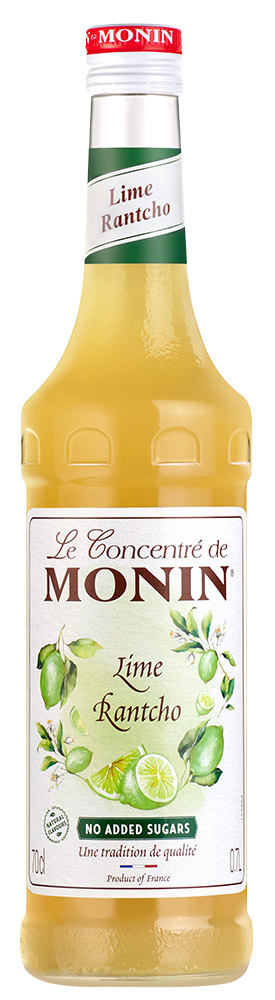 Monin Rantcho Lime koncentrat Alkohol: 0,00 % Indhold: 70 cl. Enhed: Flaske Pant: A Antal pr. kolli: 6 Land: Frankrig Monin Lime Rantcho er den perfekte måde at tilføje den friske smag af lime til dine yndlingscocktails, som daiquiris og margaritas, uden at bruge frisk limejuice. Den sikrer den helt rette bitterhed og ægte smag af lime. Monin Rantcho Lime er uden frugtkød og lavet af 40% koncentreret limesaft, og giver dine drinks en forfriskende lime-smag. Det er perfekt til klassiske drinks som gin & tonics, margaritas, caipirinhas og mojitos.