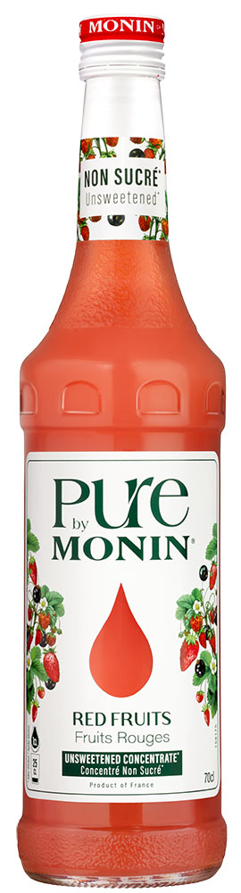 Monin Pure Red Fruits Alkohol: 0,00 % Indhold: 70 cl. Enhed: Flaske Antal pr. kolli: 6 Land: Frankrig PURE by MONIN er en banebrydende serie på 4 sukkerfrie koncentrater uden tilsatte sødemidler eller konserveringsmidler. De er lavet med juice og naturlige aromaer, så du kan skabe mange forskellige drikkevarer, med en intens og naturlig smag. Kan bruges som delikat smagsgiver i f.eks. mineralvand, sodavand, te, koldbrygget kaffe, limonade, iste, cocktails, bubble-tee og mocktails.