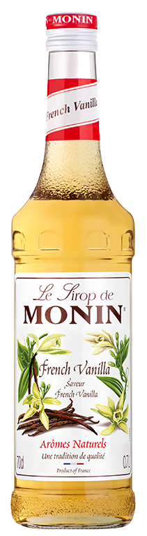 Vanilje er traditionelt blevet brugt af franske kokke i mange desserter heriblandt en lækker vaniljecreme, som senere har fået navnet ”French Vanilla”. Monin Syrup French Vanilla præsenterer en klar gyldenfarve og en sød aroma, der ledsages af en perfekt vaniljecremet smag med mandel noter, der efterfølges af en vedvarende af vanilje smag. Monin Syrup French Vanilla kan nydes i kaffe, islatte, macchiato og cappuccino, dens vaniljesmag overdøver bitterheden i enhver stærk varm eller kold kaffe for en livlig oplevelse.