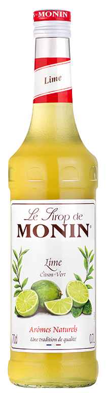 Limefrugten er lille, grøn-gul, og syrlig samt sød i smagen. Limen er både mindre og sødere end citroner. Monin Lime Sirup har en stærk aroma af lime skal sammen med en sød og syrlig smag af limesaft. Smagen af lime findes i mange klassiske cocktails herunder Gin & Tonic, Caipirinha, Margarita, Mojito og Cuba Libre. Brug eventuelt Monin Lime Sirup til at genskabe en klassisk cocktail, eller som inspiration til nye og spændende drikke.
