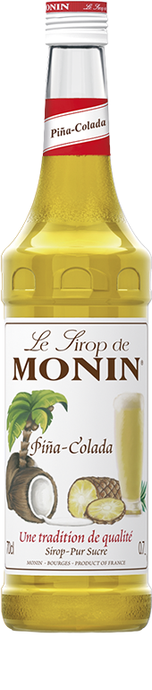 Monin Syrup Pina Colada blev opfundet for at give smagen af Puerto Rico til ikke-alkoholdige versioner af de klassiske drinks Pina-Colada elle Coco Loco. Monin Syrup Pina Colada præsenterer en uklar gul farve og en balanceret aroma af ananas og kokos, der ledsages af en smag af moden ananas og noter af kokosmel. Monin Syrup Pina Colada kan nydes sammen med yoghurt og banan for en lækker smoothie, men er også lækker at blande i cocktails, øl, sodavand eller desserter. Den kan både bruges i alkoholdige og ikke-alkoholdige blandinger.