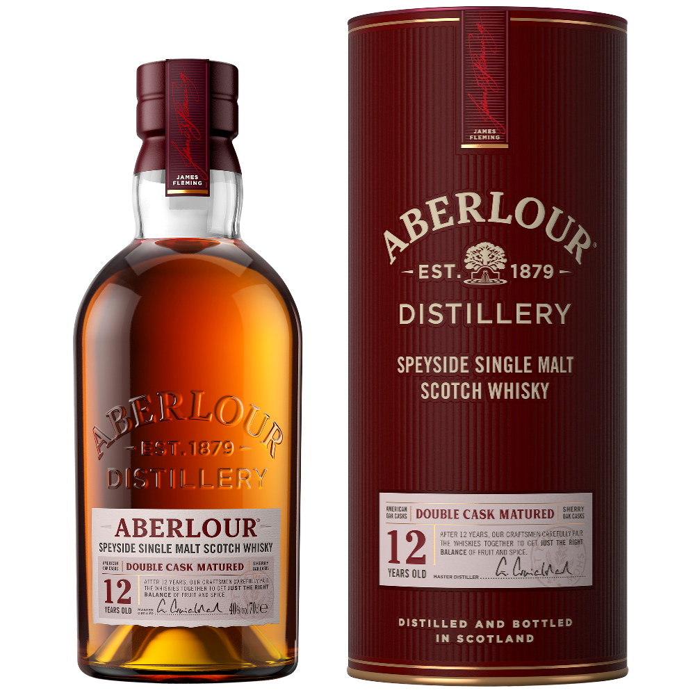 Aberlour 12 YO Speyside Single Malt er et fint eksempel på, hvordan den markante sprøde citron karakter i Aberlours spiritus er blødgjort ved dobbelt fadlagring. Både traditionelle egefade og krydret sherryfade bruges til lagringen for en fantastisk smag. Aberlour 12 YO Speyside Single Malt præsenterer en gylden rav farve med antydninger af rubin og en blød samt afrundet duft af røde æbler, der ledsages af en fin sherry karakter i smagen, som er afbalanceret med rig chokolade, karamel, kanel og ingefær, den udvikles til en varmende og dvælende afslutning med en sød og let krydret eftersmag.