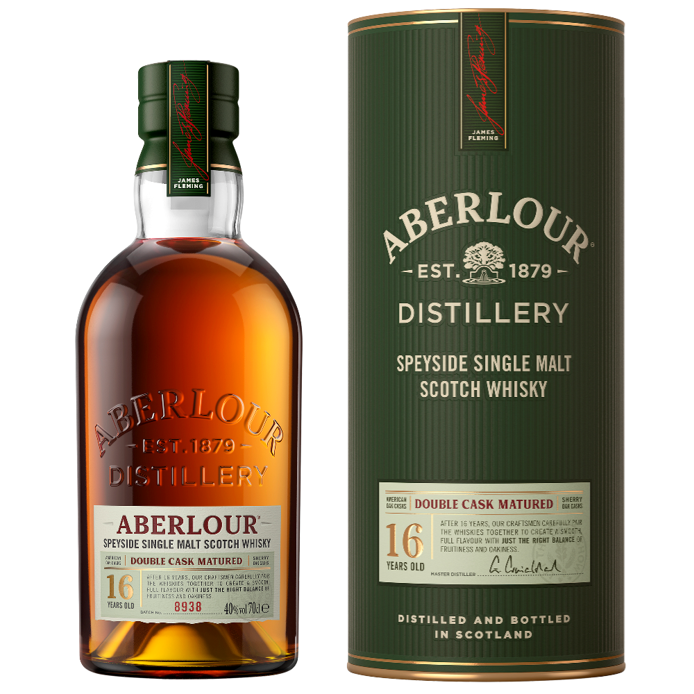 Aberlour 16 YO Speyside Single Malt er blevet dobbeltdestilleret i traditionelle egetræsfade og sherryfade, hvilket har gjort den dyb og kompleks. Aberlour 16 YO Speyside Single Malt præsenterer en cremet aroma med søde noter af rosiner og krydret nødder, som ledsages af en glat blanding af blomster og krydderi smag, parret sammen med en sød blomme og fin eg, der udvikles til en fantastisk lang eftersmag, med en varm og sukkersød krydret smag. Aberlour 16 YO Speyside Single Malt kan nydes alene, med isterninger eller en smule vand.