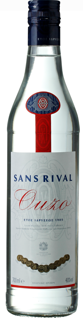 Ouzo “Sans Rival” er en græsk specialitet, som du måske første gang stiftede bekendtskab med på charterferien til Grækenland. Men Ouzo “Sans Rival” er mere værd end et feriebekendtskab. Her får du en intens smag og duft af lakrids, fennikel og andre krydderier, som danner baggrunden for en fuldendt smag. Ouzo “Sans Rival” skal blot hældes over isterninger og tilsættes vand. Herefter skifter drikken farve og bliver mælkehvid. Men smagen intensiveres, og på en lun sommerdag er det en mageløs drink at nyde. Selve flasken har et smukt udtryk, der fint komplimenterer indholdet.