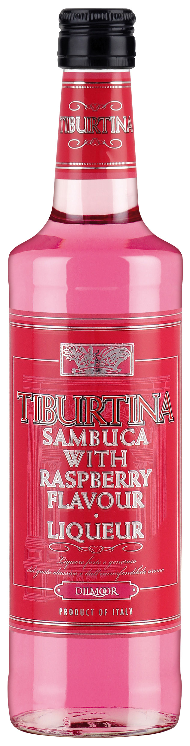 Sambuca Tiburtina Raspberry er en knap-så-klassisk udgave af en klassisk, italiensk anislikør: Sambuca med hindbærsmag. Sambucaen fremstilles i Norditalien, hvor den destilleres på anisfrø – og tilsættes smag af søde hindbær. Sambucaen er frisk og lækker, både når den nydes for sig selv og i en drink. Den egner sig også glimrende som et shot – hvad enten den er kold eller tempereret, serveres for sig selv eller opblandet, byder sambucaen her på stor nydelse.