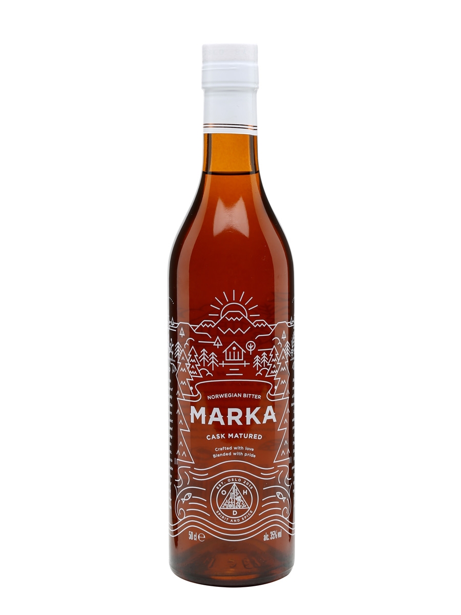 I Marka Cask Matured Norwegian Bitter får du smagen af Norden i en bitter. Opskriften er sammensat af forskellige urter, bær, blade og blomster, der vokser vildt i den nordiske natur. Hver enkel er nøje udvalgt for at opnå den bedste sammensætning af smagsnuancer. Mikset er sammensat for at bringe tankerne hen på lange sommeraftener og nordiske skove, som står i fuldt flor. Denne bitter er derfor en sand smagseksplosion af lækre sommernoter, der bl.a. helt specifikt består af enebær, kamilleblomst, angelicarod, hyldeblomst, mosepors, mælkebøtterod og rarbarberrod.