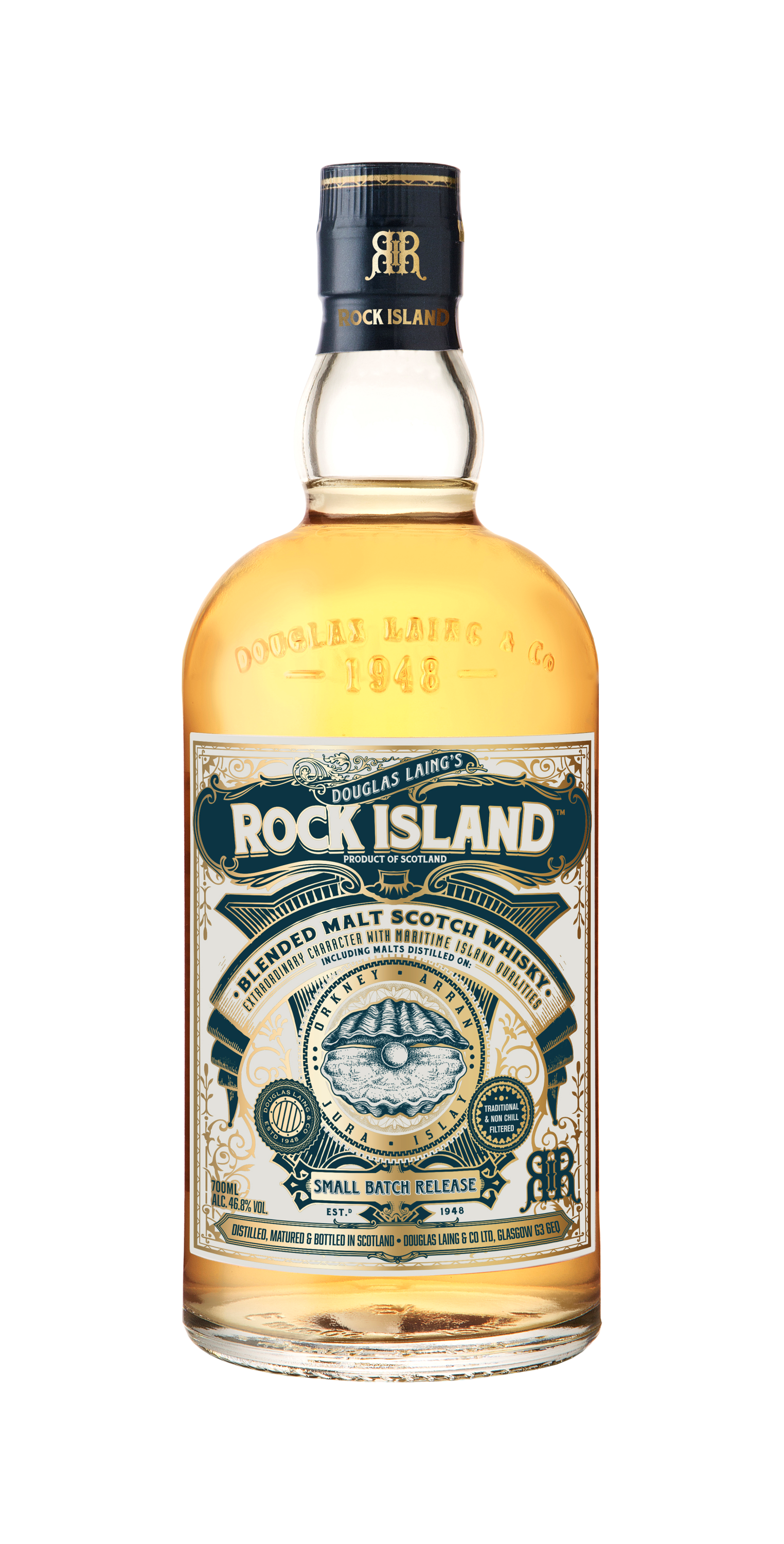 Rock Island Blended Malt har sin oprindelse fra en række skotske øer, eksempelvis Arran, Islay, Jura. Det er en spændende whisky med vedvarende og intense aromaer af sød tørv, røg, honning, lakrids og peber og en duft af frisk og saltet havvand. Den har alt i alt en meget røgfuldt og maritim karakter. Rock Island Blended Malt er en whisky af høj kvalitet, som tilbyder en spændende smagsoplevelse. Den kan både nydes ren ved stuetemperatur eller blandes i en drink eller cocktail.