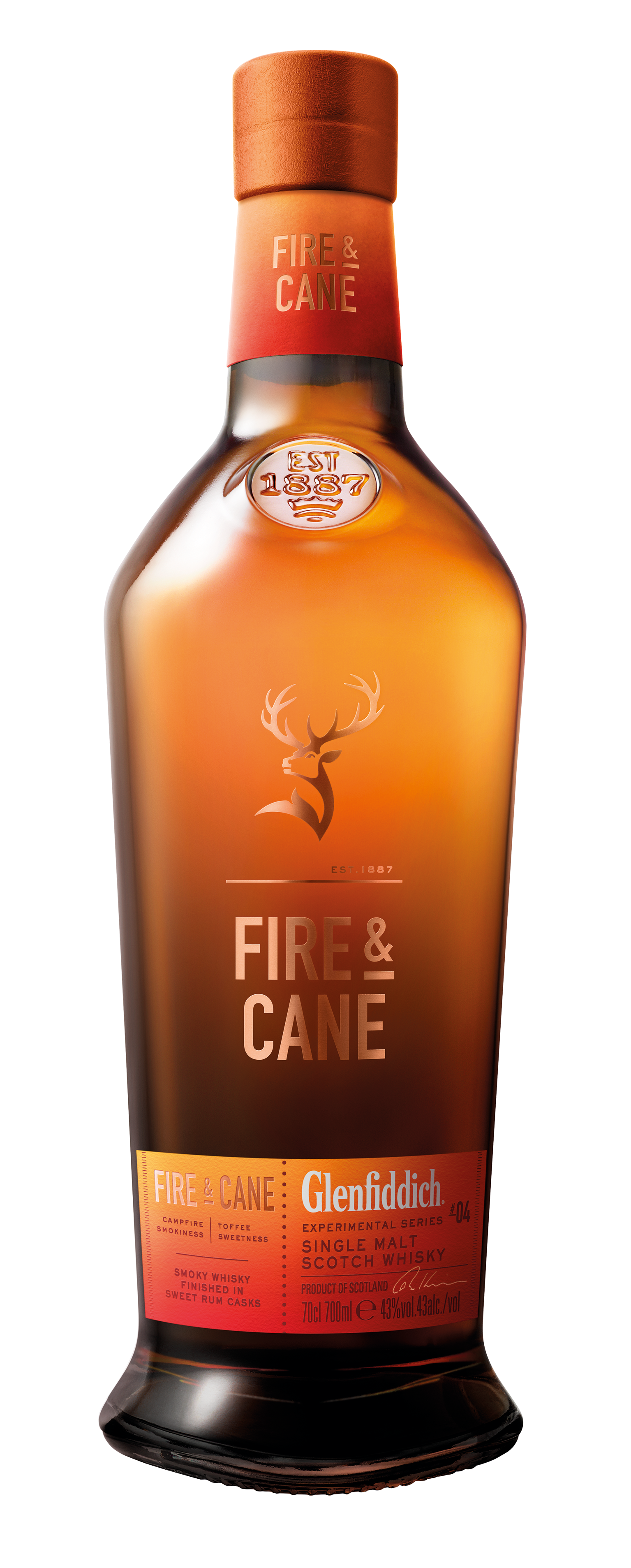 Glenfiddich ”Fire & Cane” Single Malt forener en delikat lejrbålsrøg med sød karamel i en overraskende og afbalanceret whisky. Med en sammensætning af røget whisky modnet på bourbonfade og færdigmodning på latinamerikanske romfade, der giver et lag af sødme fra karamel, får denne whisky sin komplekse smag. I næsen træder både bløde tørvenoter frem i kombination med malt, karamel og friske frugter. Smagen domineres af en sødme fra grønne frugter som æble og pærer, som diskret udvikler sig til bløde røgnoter med strejf af karamel. Eftersmagen fortsætter i kombination mellem tørv og karamel, der dog får selskab af sødme fra malt.