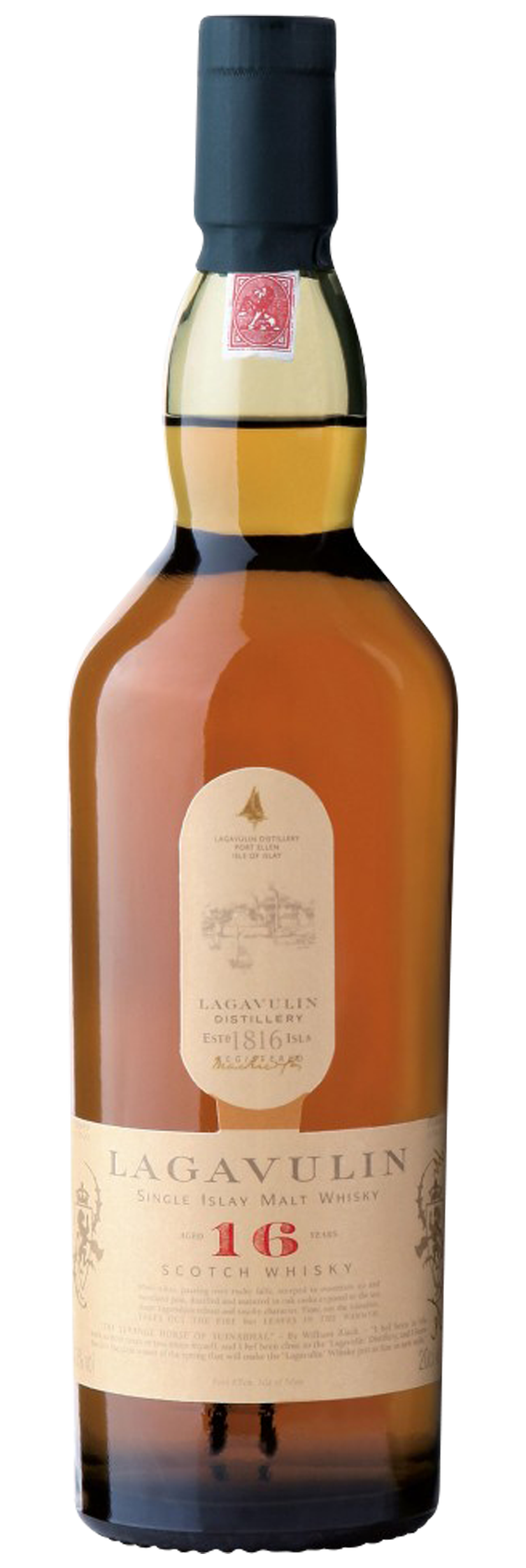 Lagavulin 16 YO Islay Single Malt er en meget eftersøgt single malt med den massive tørv der er typisk for det sydlige Islay, men tilbyder også rigdom og tørhed der bliver til en sand interessant spiritus. Lagavulin 16 YO Islay Single Malt præsenter en af de mest røget aromaer fra Islay. Den er stor, meget koncentreret og har duft af jod, søde krydderier, modnet sherry og cremet vanilje, der ledsages af en meget tyk og rig smag, en massiv mundfuld af malt og sherry, en god frugtagtig sødme, som efterfølges af en lang, krydret eftersmag af figner, dadler, tørv og vanilje.