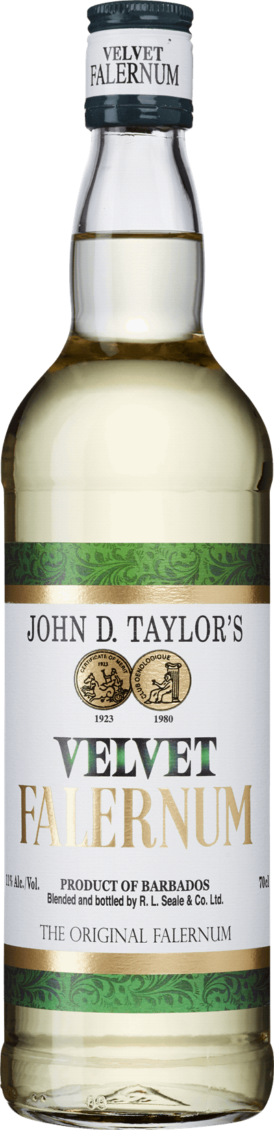 Falernum, J.D. Taylor's Velvet Falernum har ubegrænsede muligheder i mixologi. Denne unikke likør præsenterer en unik smag af kalk, mandel, vanilje, ingefær og har en fed tekstur. Den specielle smag kommer fra en raffineret blanding af citron, sukkerørssirup og botanikker, heriblandt mandler og nelliker. Falernum, J.D. Taylor's Velvet Falernum er et væsentligt element i caribiske cocktails heriblandt Mai Tai og Zombie.