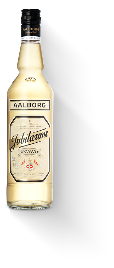 Aalborg Jubilæums Akvavit blev lanceret i 1946 for at fejre 100 års jubilæum for lanceringen af Aalborg Taffel Akvavit. Det er en gylden luksus akvavit fremstillet på destillater af dild og korianderfrø, som er blevet afrundet med ekstrakt af amerikansk hvid eg. Modsat de fleste andre akvavitter er den helt uden kommenfrø. Det giver den en elegant, balanceret smag af dild og koriander, som er de bærende kræfter, men med fine bidrag fra stjerne anis, citrus og karamel i de lidt mindre roller. Aalborg Jubilæums Akvavit passer både til fisk og svinekød, men går også rigtig fint til retter med karry eller mad fra det asiatiske køkken. Ikke mindst er den som skabt til et stykke brød med karrysild.