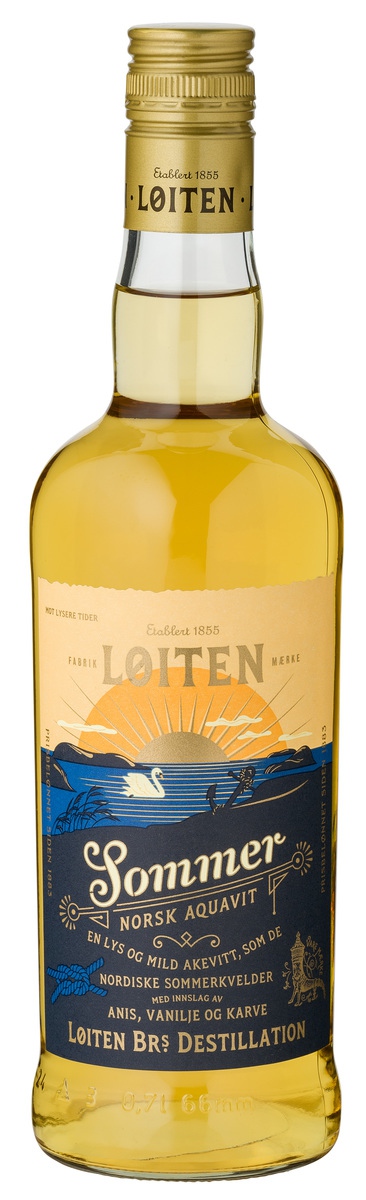 I takt med de bedste norske traditioner har Løitens Sommer Aquavit gennemgået lagring på egefade som tidligere har været brugt til produktion af sherry. Lagringen har også fundet sted på nyere fade som har givet akvavitten men fin fyldighed og antydning af vanilje. Den er krydret efter Løitens traditionelle opskrift, der indeholder en større andel af kommen, dette har givet en elegant akvavit, som smager fortræffeligt sammen med sommerens retter. Dette gælder både lette kødretter og retter med fisk eller skaldyr, men den kan også på grund af sin milde smag nydes alene eller sammen med en øl. Den skal serveres let afkølet. Destillatøren Halvor Heuch, der er manden bag Løitens sommer Aquavit, har givet følgende karakteristik, ”Løitens Sommer Aquavit er lys og mild som de nordiske sommeraftner. Farven er gylden, med rig krydret duft af krydderier og vanilje. Smagen er mild, med harmonisk krydderkarakter. Lagring på specielt udvalgte sherryfade har givet en fint afrundet akvavit med en elegant fyldighed.”