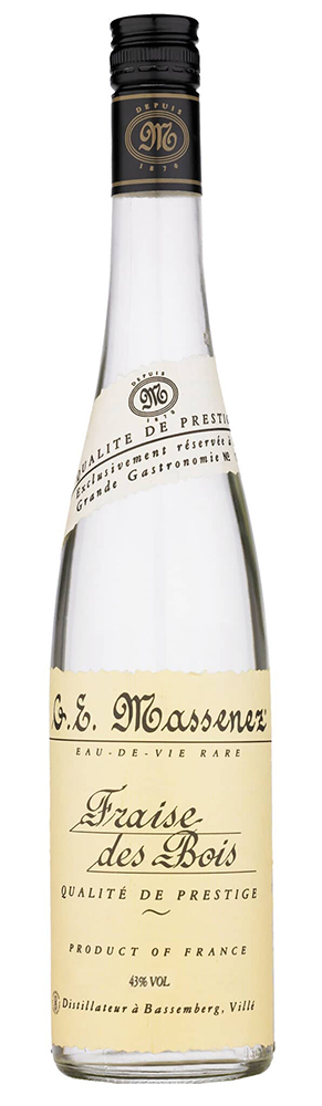 Massenez’s Eaux-de-Vie er kendt for deres kvalitet og raffinement i munden. Højkvalitetsprodukter mellem 40 og 46 grader, der med sikkerhed bringer nydelse i hver smag. Hvert år, bliver denne varegruppe fejret med guld medaljer ved internationale spiritus konkurrencer. Massenez Eau de Vie Fraise des Bois er fremstillet på destillat af skovjordbær. Den er helt igennem raffineret, delikat og balanceret. Den har en meget intens duft og smag af skovjordbær.