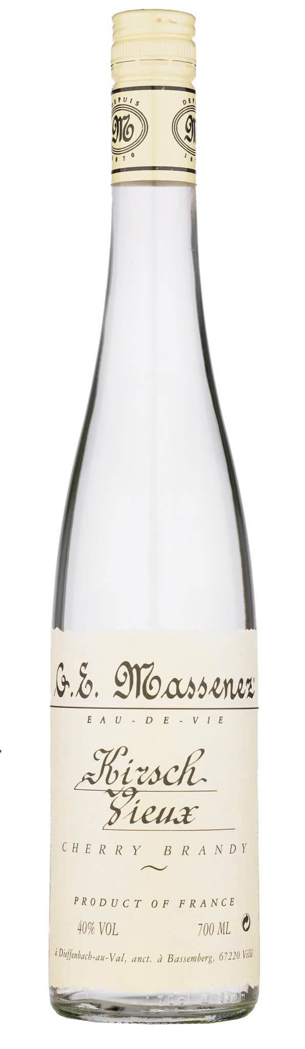 Eau de Vie Kirsch produceres på sorte kirsebær, og ifølge loven skal der anvendes 18 kg. kirsebær til 1 liter ren Eau de Vie. Bærrene afstilkes, sorteres og lægges derefter i store kar, i hvilke en naturlig gæringsproces sættes i gang i kraft af de gærceller kirsebærrene indeholder. Når gæringsprocessen, der har foregået i op til 5 uger, har omdannet frugtens sukker til alkohol, bliver det derefter destilleret. Senere bliver det lagret på stålfade. Denne Eau de Vie har en karakteristisk aroma af kirsebær, samt en let mandelsmag, som er overført fra stenen til frugtkødet under gæringen. Aromaen aftager en smule med tiden, og derfor er det ikke tilrådeligt, at gemme indholdet alt for længe efter åbningen af flasken. Eau de Vie Kirsch kan nydes ved stuetemperatur og den er perfekt som afslutning på en god middag.
