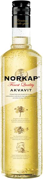 Alkohol: 37,5 %Indhold: 70 cl.Land: Danmark Her får du en danskproduceret snaps, som både i flaskens design og de nøje udvalgte smagsgivere er tilpasset den moderne forbruger. Her er naturligvis stadig tale om en snaps, som passer perfekt til julefrokosten, silden og de fede madvarer. På en anden side er der tale om en forfinet smag, som i den grad er med til at sparke til oplevelsen. Med havtorn som et af krydderierne og Norkap Akvavittens smukke gyldne farve kan du se frem til et spændende møde, hvor du ikke behøver at knibe øjnene sammen og tænke på noget andet, når de liflige dråber rammer din gane.