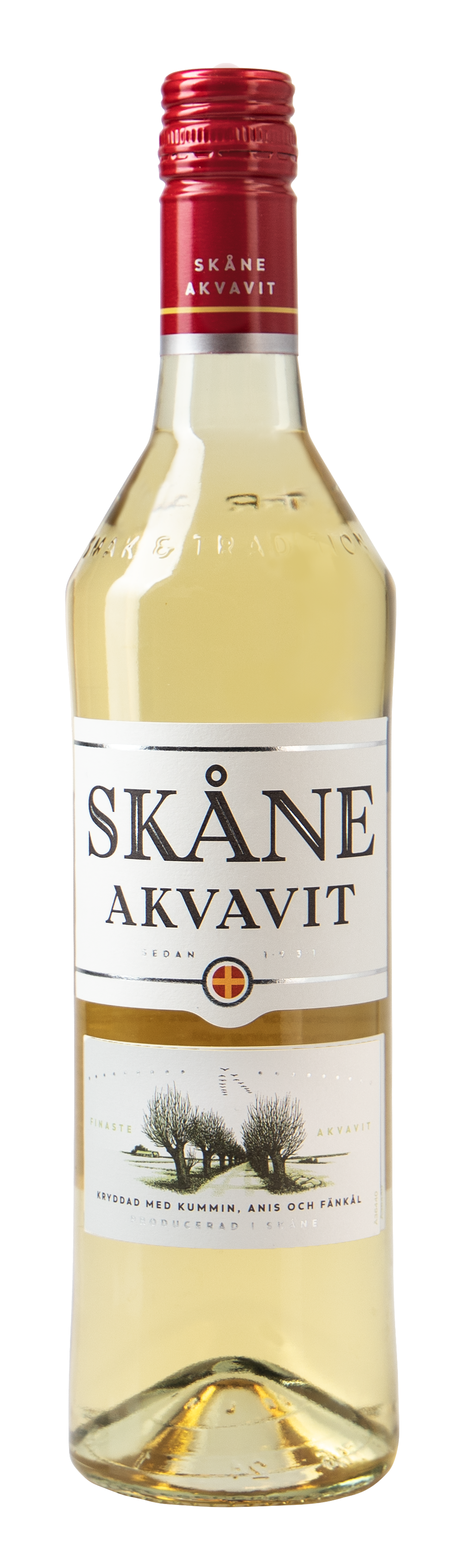 Skåne akvavit blev lanceret tilbage i 1931, og blev med sin milde karakter hurtigt en populær flaske på frokostbordet. I de senere år har specielt den asiatisk inspirerede mad fremmet salget af Skåne akvavit. Forefindes naturligvis i enhver butik, der henvender sig til svenske turister på indkøb af dagligvarer i Danmark. Krydret svensk brændevin der ligesom anden god akvavit fra Sverige er håndværksmæssigt fremstillet og krydret efter originale opskrift. Skåne Akvavit er en mild kommen akvavit med strejf af anis og fennikel. Passer perfekt til smørrebrød. Den er også god i kombination med asiatisk mad, frem for alt sushi.