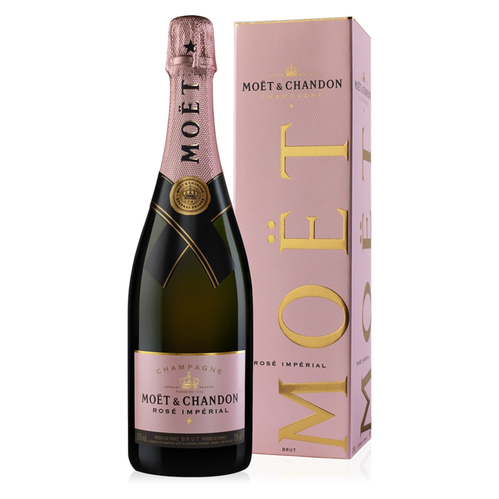 Moët & Chandon blev etableret i 1743 af hollænderen Claude Moët. Selskabet er i dag en af verdens største producenter af champagne og et meget prominent champagnehus. Moët & Chandon ejer vingårde på mere end 1.000 hektar og fremstiller hvert år mere end 25 millioner flasker. Moët Imperial Rosé er Moët & Chandon's romantiske champagne. Den skiller sig ud ved sin frugtige og forførende smag, og sin elegante modenhed. Dette får den fra kombinationen af Pinot Noir, Pinot Meunier og Chardonnay druer. Champagnen har en lyserød farve og en livlig smag af røde frugter, som jordbær, hindbær og kirsebær. Leveres i gaveæske.