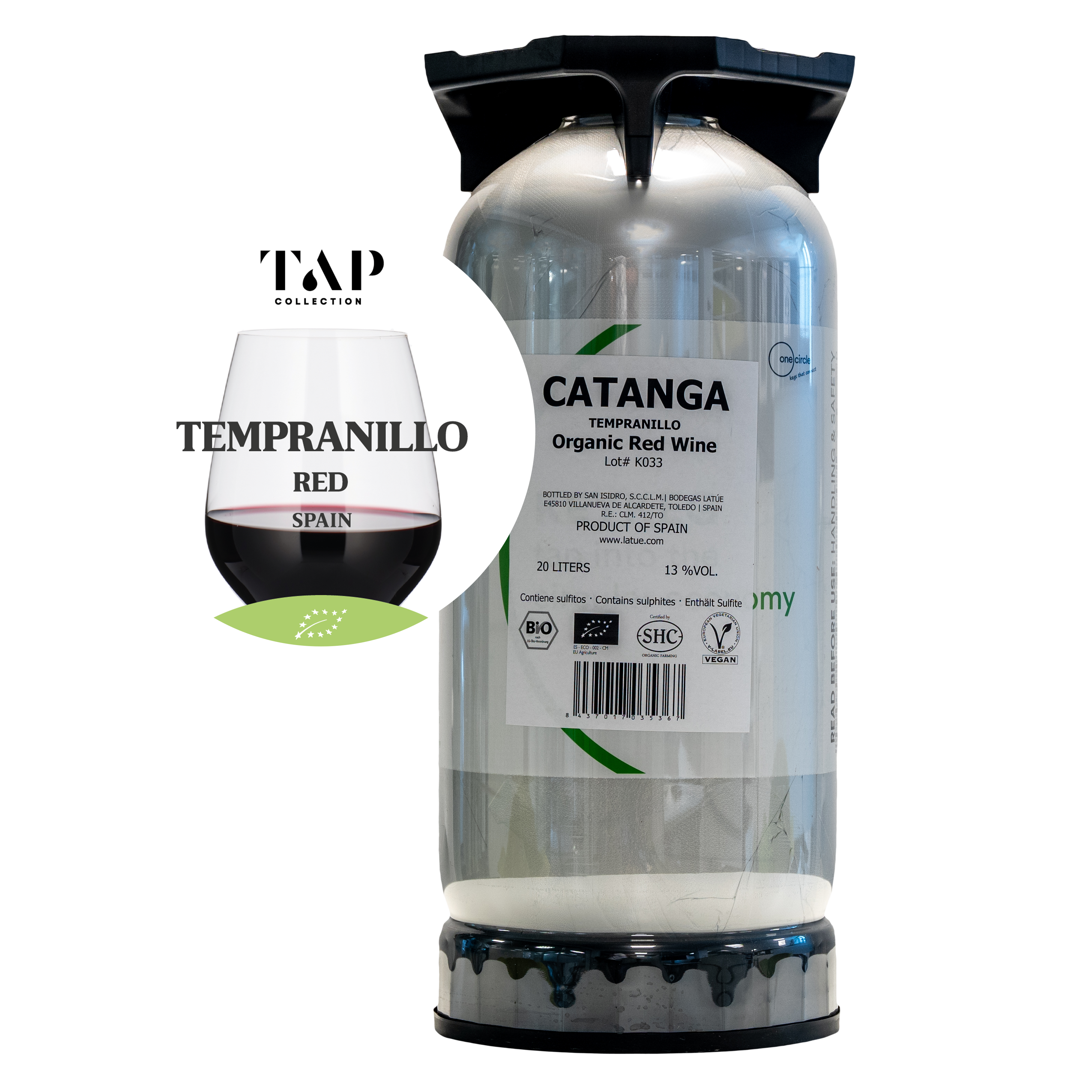 TAP Collection Tempranillo kombinerer økologisk vinfremstilling med den rigtige kvalitet til den rigtige pris, alt sammen pakket ind i et moderne udtryk. TAP Collection Tempranillo er frembragt udelukkende på økologisk certificerede Tempranillo-druer, dyrket i området La Mancha. Druerne bliver håndplukket og afstilkes inden macerationen med daglige overpumpninger finder sted. Gæringen foregår ved 25-28 grader i temperaturkontrollerede ståltanke. Inden aftapning filtreres og koldstabiliseres vinen. TAP Collection Tempranillo har en smuk klar granatrød farve. Bouqueten er elegant og intens med frugt- og især røde bær-aroma. Smagen er fyldig med en flot balance, bløde tanniner og en behagelig lang eftersmag.