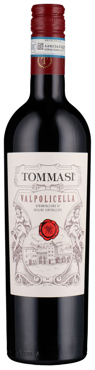 Tommasi, Valpolicella 2022 Alkohol: 12,00 % Indhold: 37,5 cl. Enhed: Flaske Antal pr. kolli: 12 Land: Italien Tommasi Valpolicella er lavet på en blanding af 60 % Corvina, 30 % Rondinella og 10 % Molinara. Efter gæring lagres vinen i to måneder på store 6.500 liters slavonske egetræsfade, hvilket giver den en blød og afrundet smag uden at miste sin friskhed og frugtige karakter. Vinen har en dyb kirsebærrød farve og dufter af røde bær som ribs og hindbær. Den er let i smagen og passer godt til pastaretter, milde oste og lyst kød.